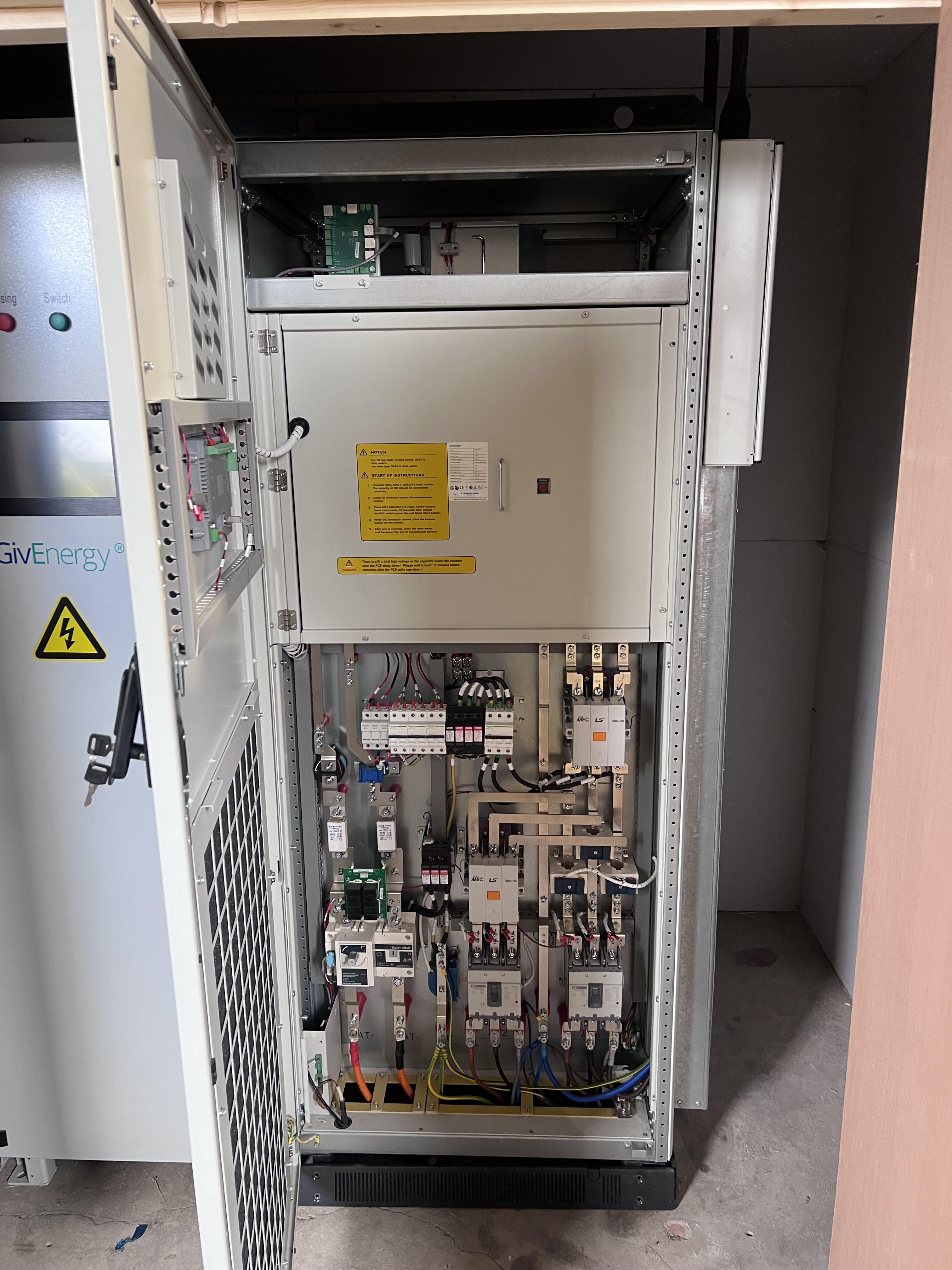 One of the key challenges was the layout of the existing solar infrastructure. The PV system was spread across multiple buildings, with individual inverter circuits supplying different areas of the site. In order for the battery system to function effectively, Evo Renewables re-engineered the system, consolidating and re-routing solar circuits to create a centralised point of integration.
